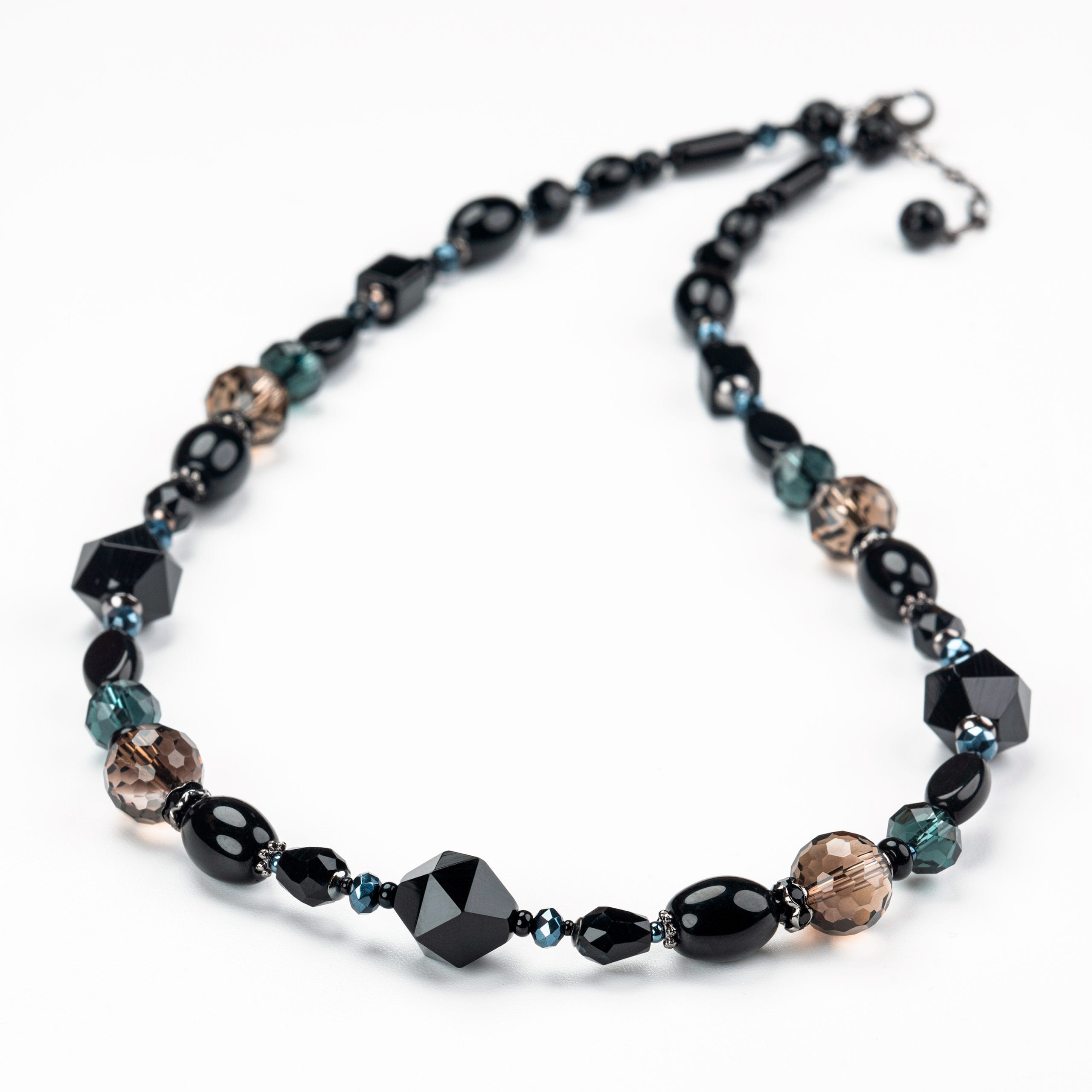 5600 ₽Украшение из агата и раухтопаза, с серебристыми вставками, стразами и бисером. Длина украшения 46,5 см., плюс цепочка 3,5 см.