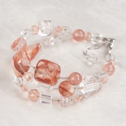Трёхрядный браслет из горного хрусталя и гематитового кварца. Длина изделия – 18,5 см (с увеличением за счёт цепочки до 23 см).