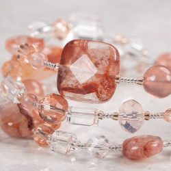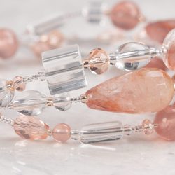 Длинное колье из горного хрусталя и гематитового кварца. Длина изделия – 140 см.