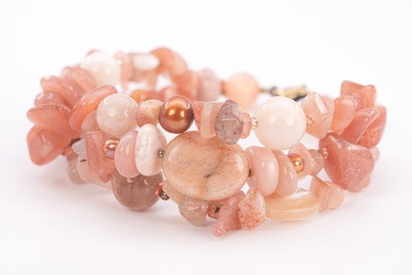Original price was: $90.$71Current price is: $71.Многослойное колье “Ориона” собрано вручную из солнечного камня, жемчуга и перламутра в тёплой бежево-золотистой палитре. Солнечный камень мягко мерцает при движении, придавая украшению живое сияние. Несколько нитей длины образуют красивый многослойный узор и визуальный ритм. Это украшение подойдёт как для повседневных образов, так и для особых случаев. Лучше всего сочетается с однотонной одеждой в нейтральных, белых, кремовых или пастельных оттенках. Хорошо смотрится с открытой зоной декольте, топами и лёгкими летними платьями.