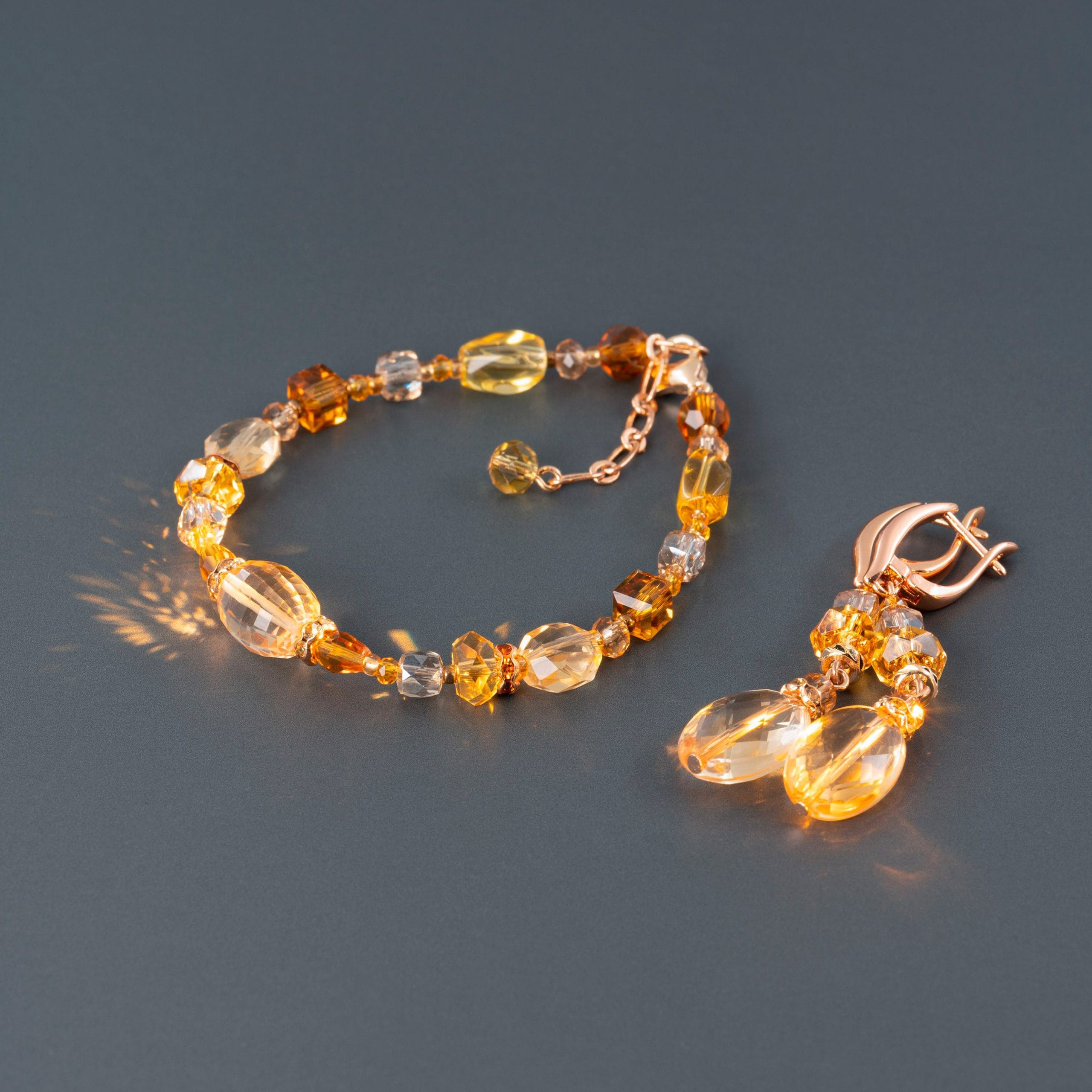 9000 ₽Браслет из огранённого цитрина сияет особым тёплым светом, который делает его универсальным акцентом. Он одинаково красиво раскроется в повседневном наряде и в вечернем образе, добавляя ощущение уюта и лёгкой роскоши. С серьгами он превращается в полноценный дуэт — и в стиле, и в выгоде.
