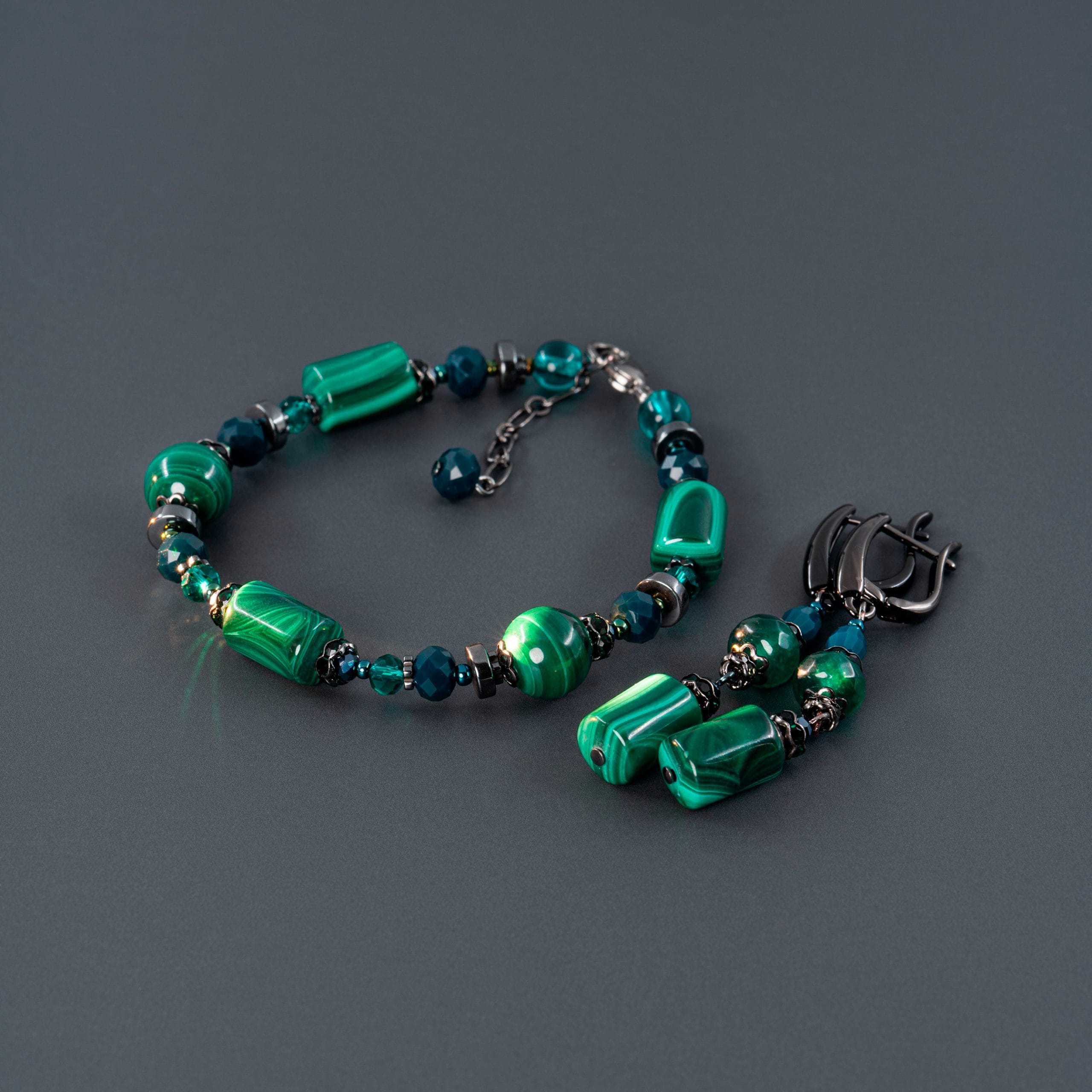 8000 ₽Браслет из натурального малахита притягивает взгляд своими глубокими зелёными узорами. Камень словно хранит силу самой природы — в каждом завитке проявляется уникальный рисунок, неповторимый, как отпечаток пальца. Дополненный аккуратными деталями и ручной сборкой, этот браслет создаёт ощущение стиля и уверенности, а его благородный оттенок легко сочетается как с классическим образом, так и с повседневными нарядами.