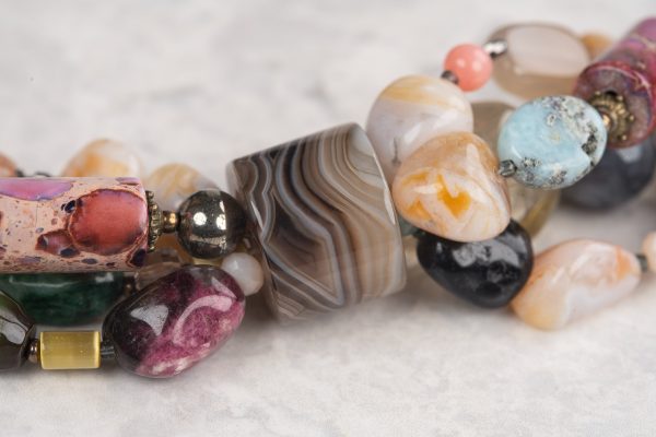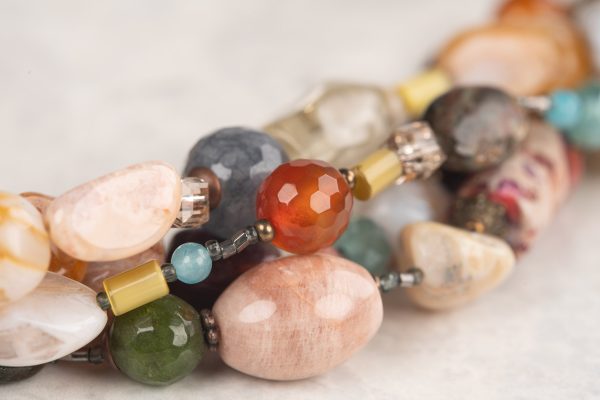 4500 ₽Браслет из натурального варисцита, лимонного раухтопаза, солнечного камня, агата и кварца. Длина – 19 см (с увеличением за счёт цепочки до 22,5 см).