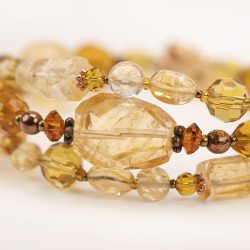 Длинная нитка “Мед” из цитрина. Длина нитки 140 сантиметров, что позволяет носить ее в несколько рядов.