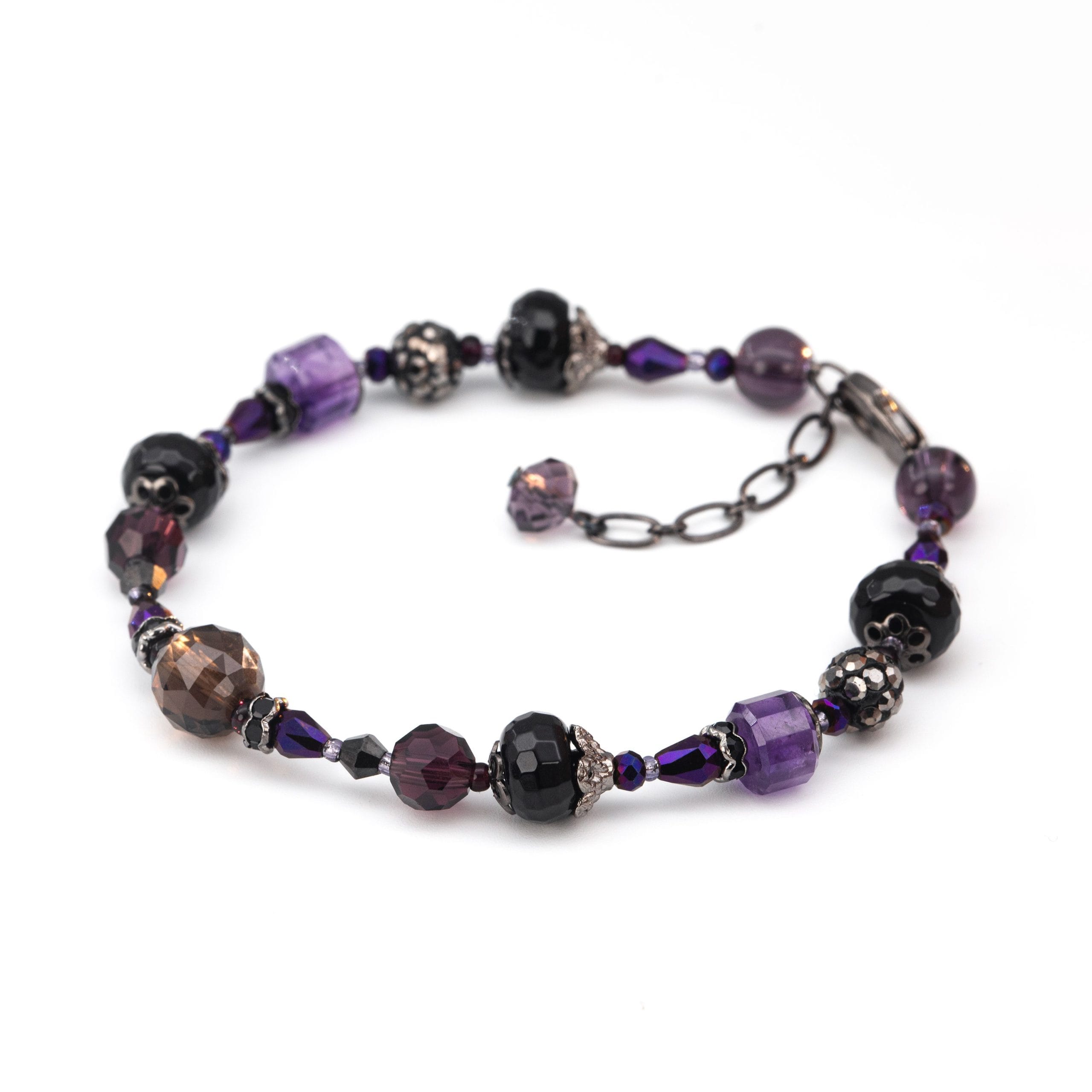7200 ₽Глубокие фиолетовые переливы аметиста, мерцающая огранка раухтопаза и холодное сияние страз в обрамлении тёмной фурнитуры создают атмосферу таинственности. Браслет и серьги вместе образуют цельный ансамбль, который подчеркнёт вечерний образ. А при покупке комплекта цена выгоднее на 10%.