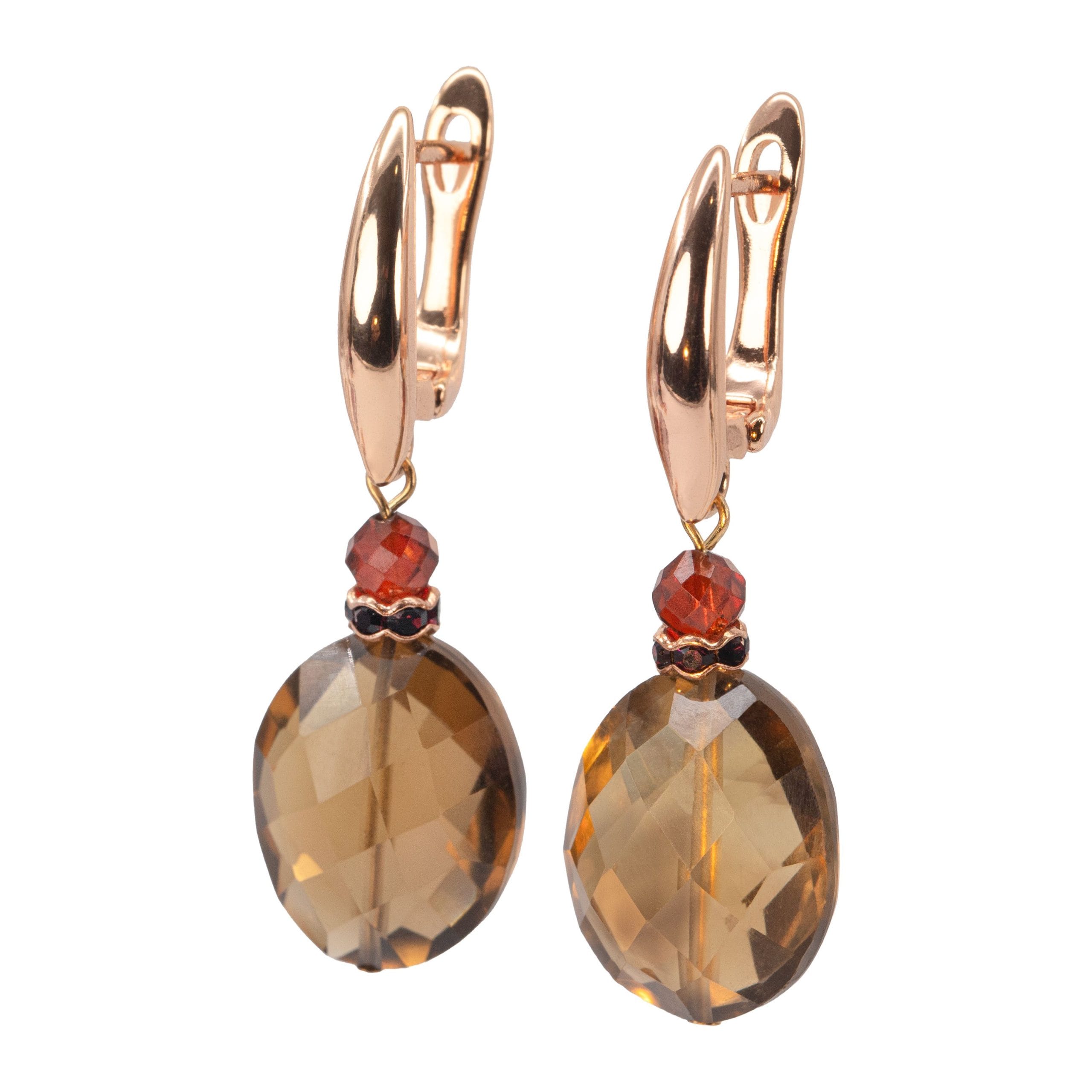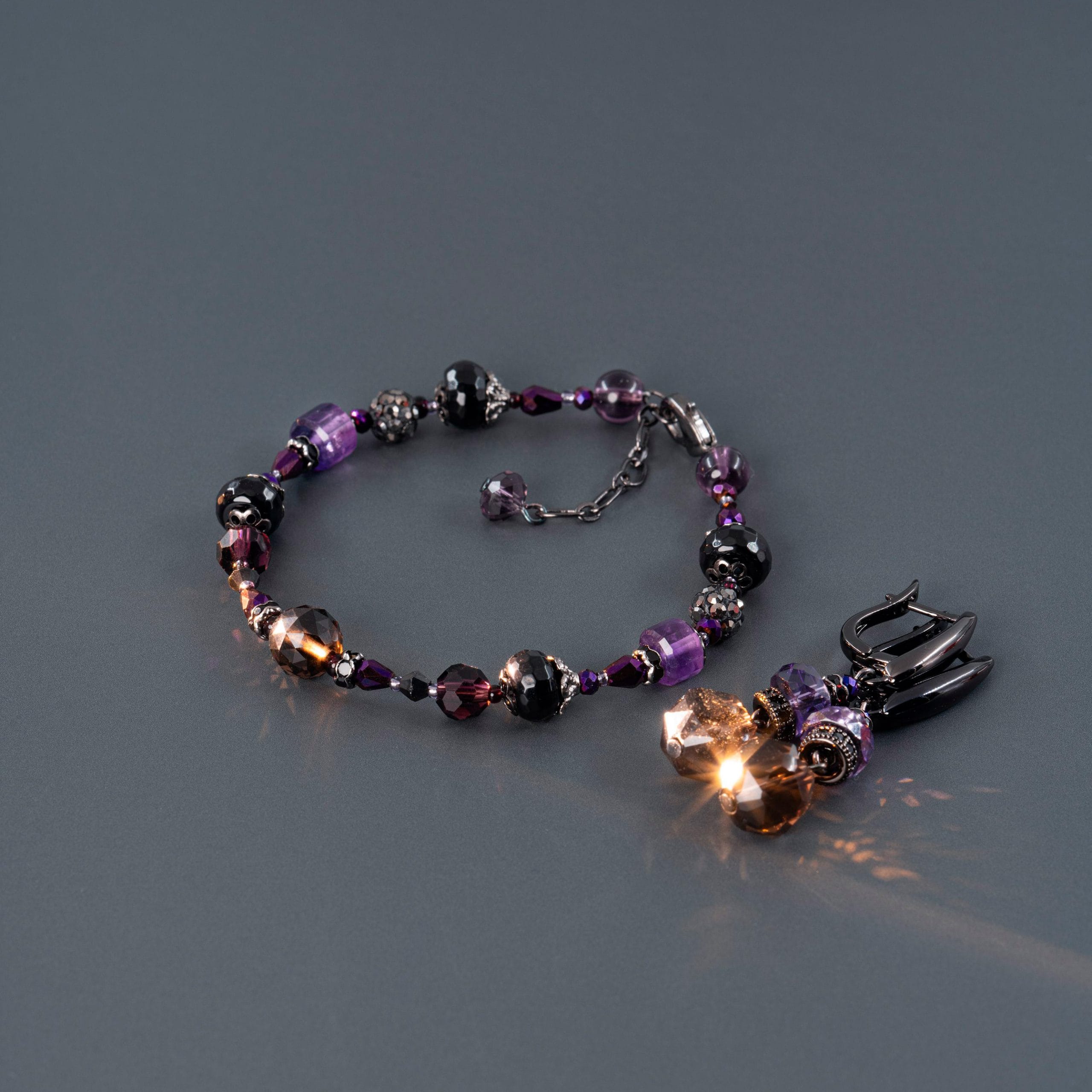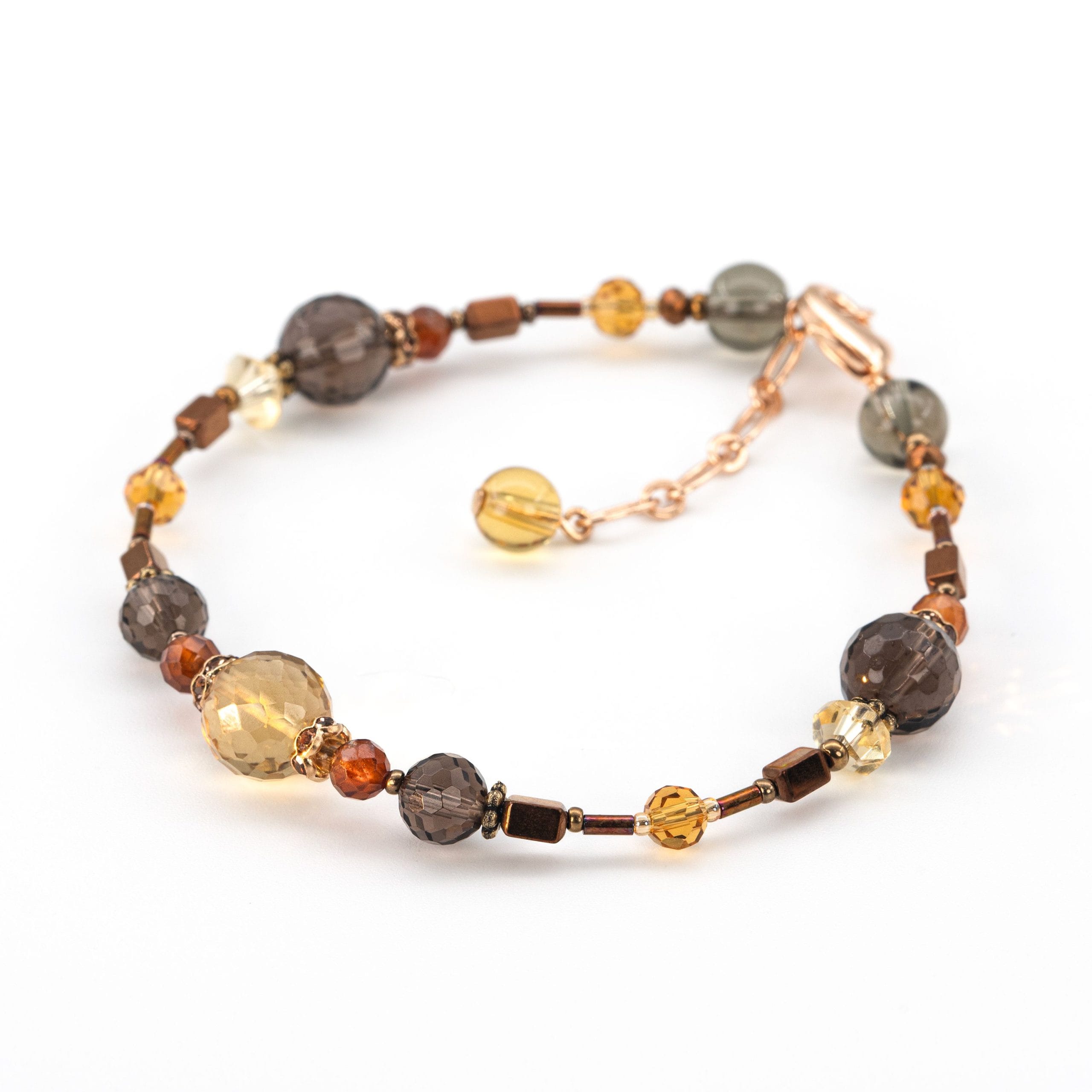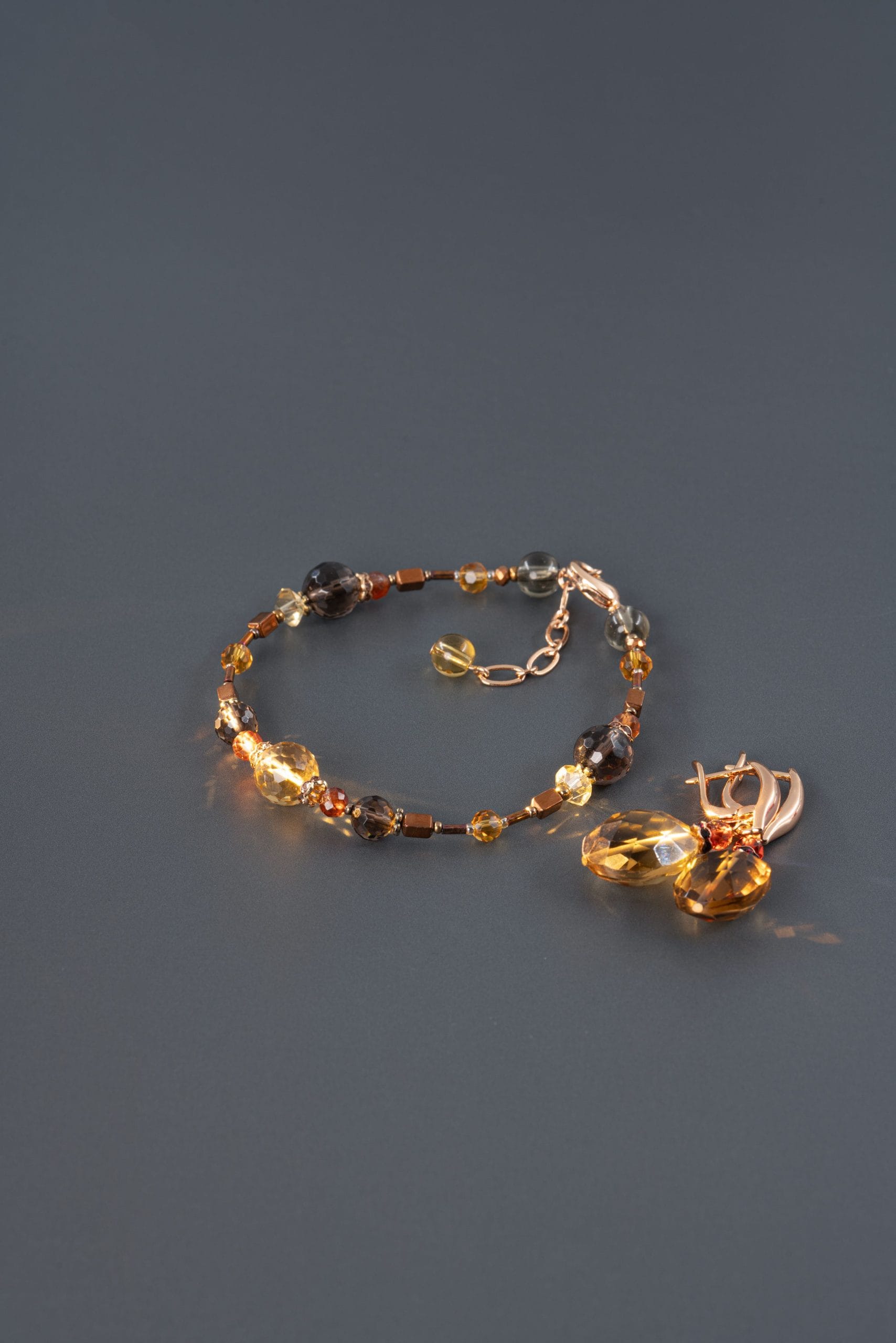 Браслет и серьги из виски-топаза, раухтопаза и гессонита