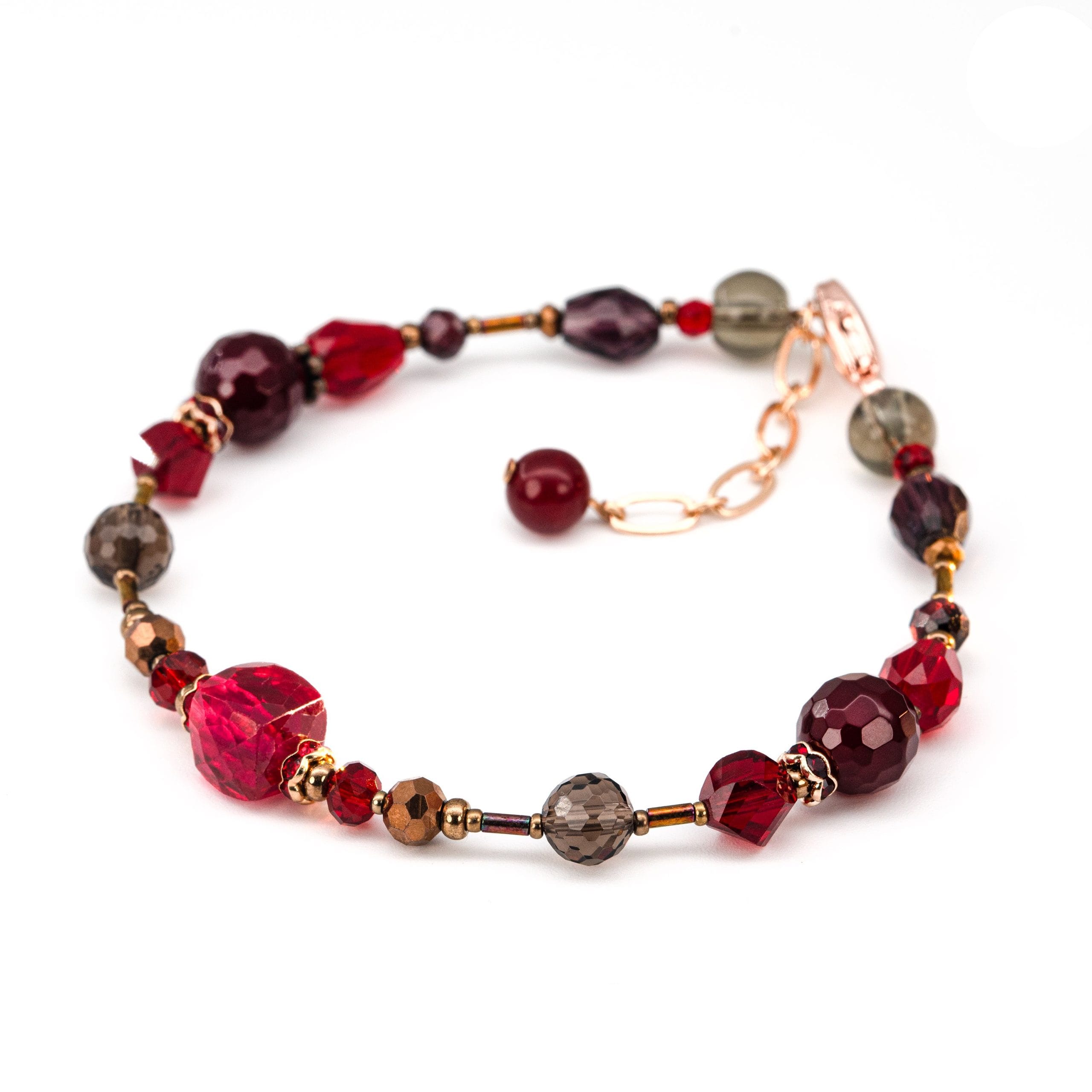 4500 ₽Изящный браслет ручной работы с малиновым корундом, гранёным гранатом и стеклянными вставками. Золотистые стразы придают украшению утончённый блеск, делая его универсальным — и для повседневного образа, и для особых случаев. В паре с серьгами браслет раскрывается ещё ярче, а комплект обойдётся выгоднее.